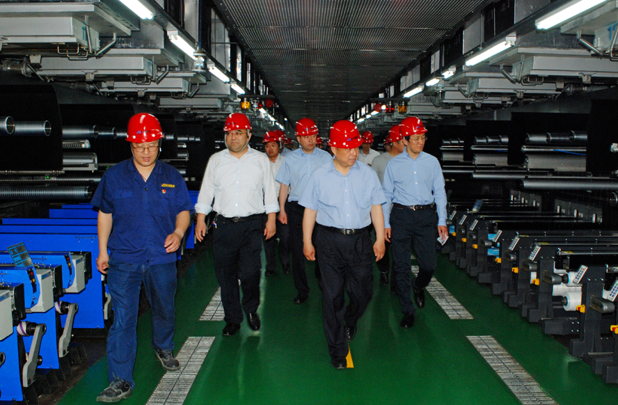 6月5日上午,市长方伟一行到氨纶公司调研工作,深入氨纶公司八期车间、立体包装库等一线生产区,对氨纶丝生产工艺流程、性能用途以及公司安全环保、生产运营情况进行了详细了解。集团公司董事长、党委书记杨龙现场介绍了氨纶公司远景战略规划、与下游企业开展战略合作以及氨纶公司在拓展产业链扩大营销范围方面所做的创新尝试。方伟对氨纶公司环保工作的成效和创新思路谋发展的做法表示肯定,并希望氨纶公司要坚定不移地实施差别化战略,开拓创新谋发展,以更加有力的举措推动企业跨越发展。