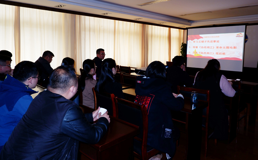 供销公司党支部组织全体党员及入党积极分子集体学习王继才先进事迹,并观看了革命历史题材电影《血战湘江》。