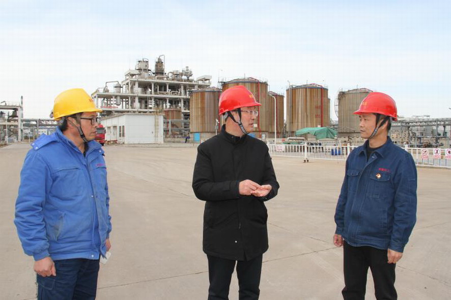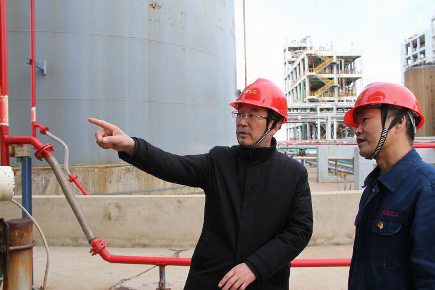 近日,集团公司总经理胡建明到利海检查安全工作,实地查看了装置生产、罐区管理等安全情况,重点视察了甲苯罐区等重大危险源,了解甲苯罐的日常运行和设备维护情况。