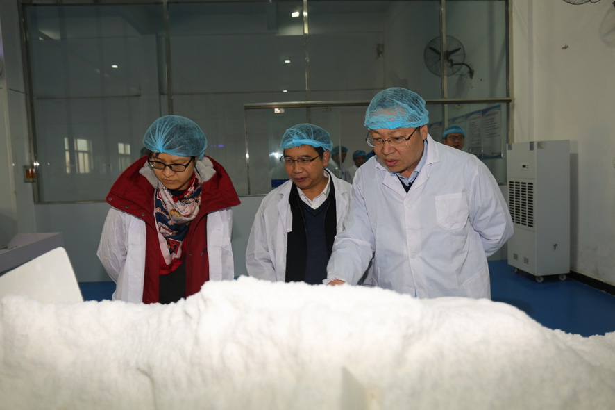 曹鑫副处长一行参观了金桥制盐公司雪花盐车间、加工盐车间和包装盐车间,现场了解海食盐生产工艺流程、产品销售情况,并听取了公司目前生产过程、质量管理以及市场销售等情况汇报。曹鑫副处长对金桥制盐公司质量管理工作给予了肯定,并希望公司能够牵头制订海盐生产企业工艺流程标准,为国家制订海盐质量管理办法提供参考依据。