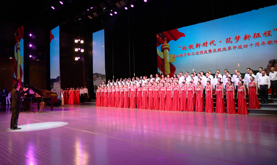 9月28日下午,由市委宣传部、市总工会、市文广新局联合举办的“放歌新时代·筑梦新征程”——连云港市职工迎国庆暨庆祝改革开放四十周年歌咏比赛在市艺术中心隆重举行。来自各县区、各条战线的16支代表队参加比赛,经过3个多小时紧张角逐,集团公司组织的100人合唱队以《走向复兴》、《天路》两首激昂向上的歌曲脱颖而出,获得一等奖。
