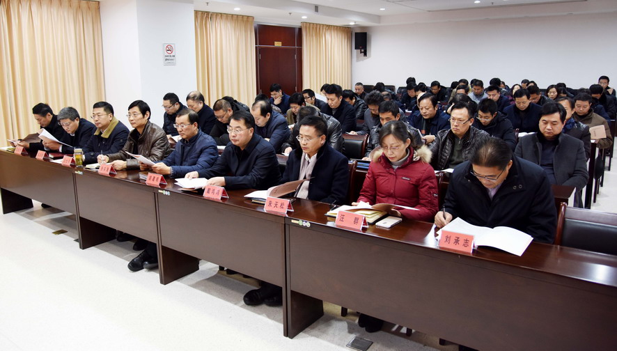 1月10日下午, 集团公司召开2017年度领导班子及成员年度考核会议,全面落实“从严治党”责任,践行“两学一做”学习教育常态化制度化要求。市委组织部考核组成员、集团公司领导班子成员,集团总部中层管理人员、各直属单位党政主要负责人参加会议。会议由集团公司党委书记、董事长杨龙主持。