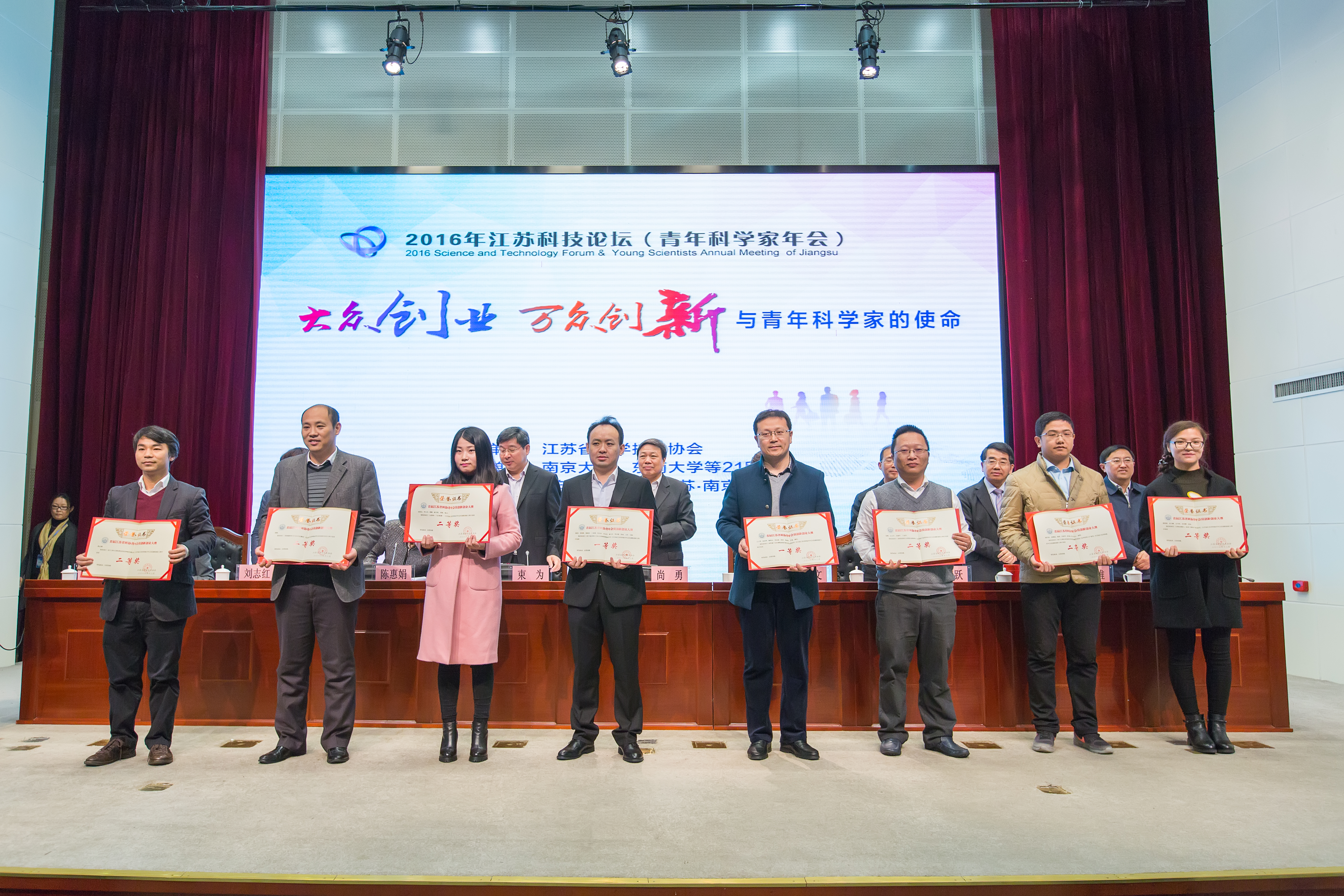 2016年12月4日,2016年江苏科技论坛(青年科学家年会)在南京举行。中国科协党组书记、常务副主席尚勇,省委常委、宣传部长王燕文出席开幕式并为首届江苏省科协青年会员创新创业大赛获奖者颁奖。