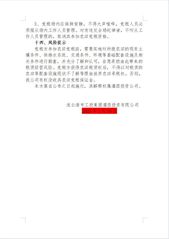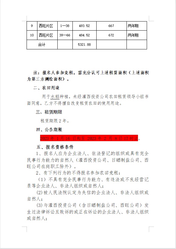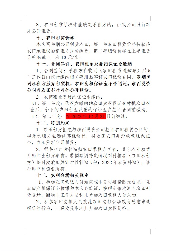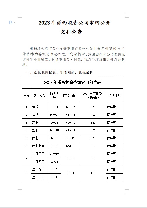 2023年灌西投资公司农田公开竞租公告