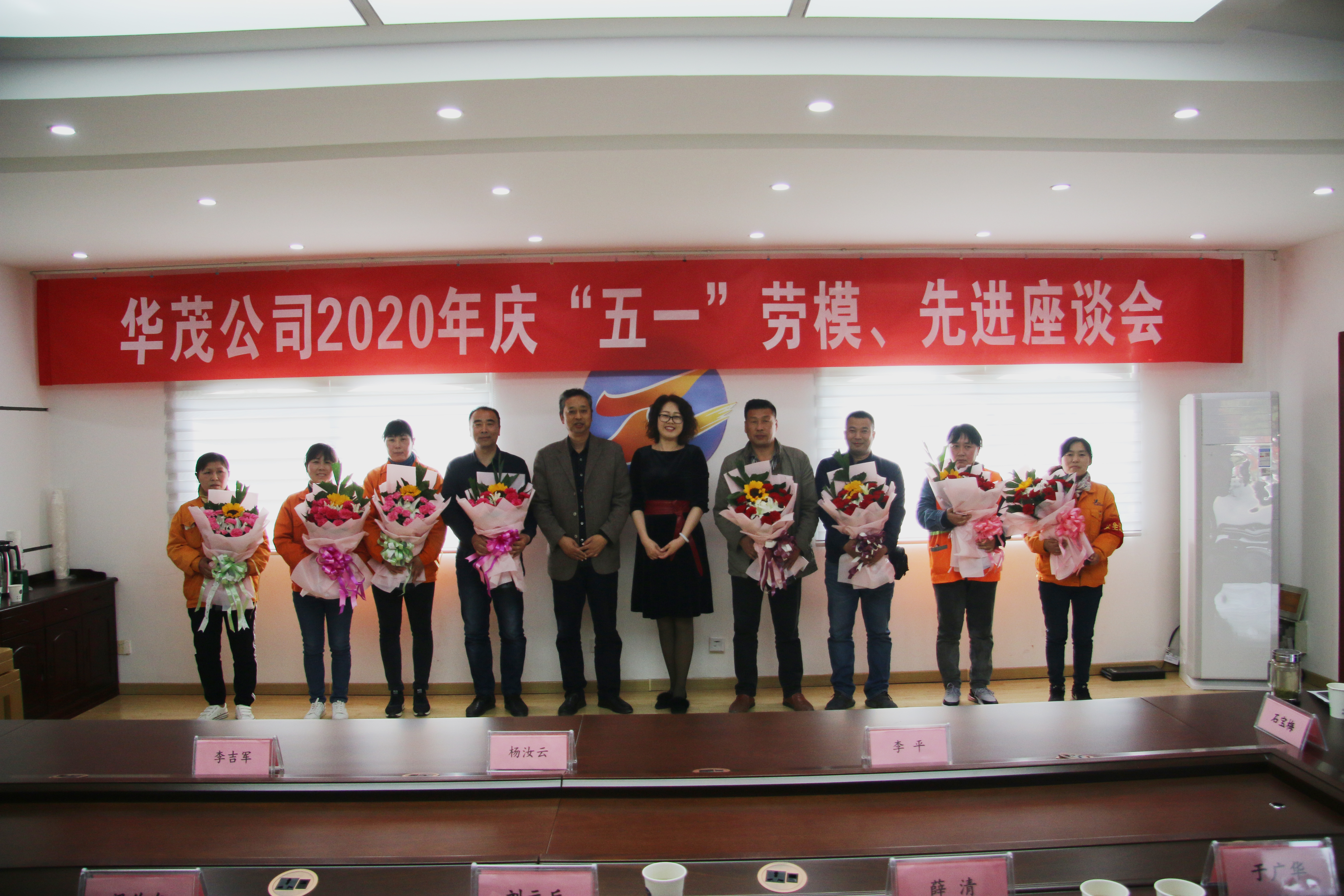 最后,公司领导向劳模、先进代表献上节日的鲜花,向他们及广大职工致以节日问候!