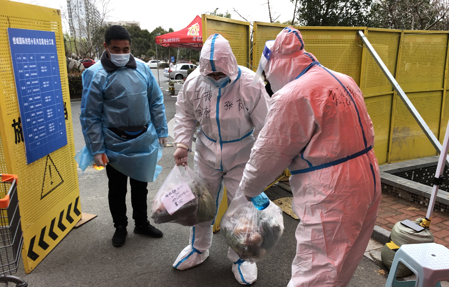 儿子张飞,加入朐海社区悦城国际临时党支部,任支部委员,被安排做10号楼的楼长,负责本栋楼的核酸检测秩序、物资配送上门、每日两次体温检测统计、楼道消杀和各种情况问题协调处理。为针对性解决居民的实际困难,张飞第一时间对29户人家摸底,哪家有孕产妇、孤寡老人、低保需要照顾帮扶的,哪家有慢性病病人需要买药就医的,哪家有需要协调解决问题的,都调查得一清二楚。每天按各楼栋核酸检测顺序,根据每栋楼人数,估算大概排到所负责楼栋的时间发到群里,让大家有提前准备时间;住户家里有行动不便的老人,张飞就协调上门核酸采集;住户家里有上网课的学生,张飞协调优先检测,不影响学生的学习;近日天气降温,张飞提前在群公告里提醒各位居民参加核酸检测时添加衣物;晚上进行检测时提醒大家慢行、防止磕碰。尽管张飞负责的10号楼是多层,没有电梯,他仍然按规定,穿着不透气的隔离服、戴着N95口罩,坚持将每一份物资配送上门,虽然是个30多岁的年轻人,但每天数十趟的楼上楼下往返,对他来说也是一份严峻的考验。志愿服务期间,张飞还编发了本小区志愿者抗疫倡议书,为小区居民提供志愿服务素材,供“港城365”栏目编排呼吁广大青年加入志愿者队伍的宣传视频。