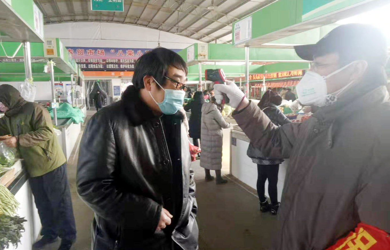 市场职工在营业期间,多措并举开展疫情防控工作。他们在做好自身防护的基础上,每天对市场内外环境进行三次消毒,并在入口处张贴通告,增强经营户和群众的防范意识和能力。出入口由两个变为一个,设立体温检测和防疫工作站,所有进出市场人员必须要戴口罩,经营户还要佩戴防护手套。同时市场职工还注重加强对经营户宣传新型冠状病毒防护知识,教育、引导广大经营户养成勤洗手、戴口罩的良好卫生习惯,同时坚决禁止活禽和野生动物交易行为,严厉打击价格违法行为,为打赢肺炎疫情阻击战提供有力保障。