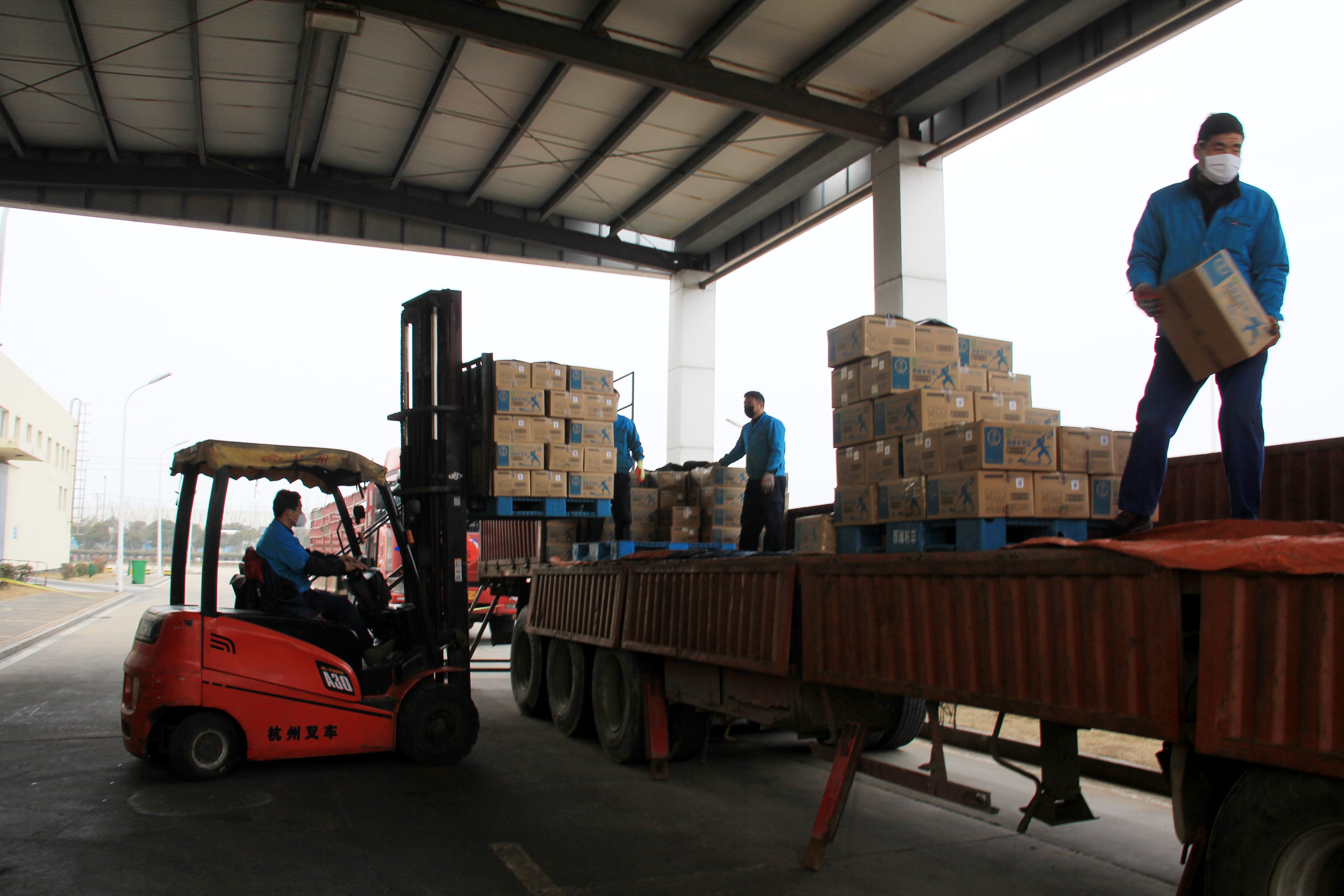 疫情发生后,我市广大居民群众认真落实“不外出、不聚餐”的防控要求。为了做好家庭储备,许多消费者采购了大量食盐,造成市内部分超市出现食盐断货现象。1月27日(大年初三),苏盐连锁连云港分公司与金桥制盐公司联系食盐发运事宜,以保障市场供应。得知这一情况后,该公司立即做出响应,公司销售部门联系运力,次日(1月28日)即可装货;配送中心党支部书记、主任丁士军带领共产党员陆长征、肖家军、伏胜利和另外4名装卸人员放弃休假,于大年初四赶到公司,顶着寒风,把一箱箱盐产品整齐地码装上车。