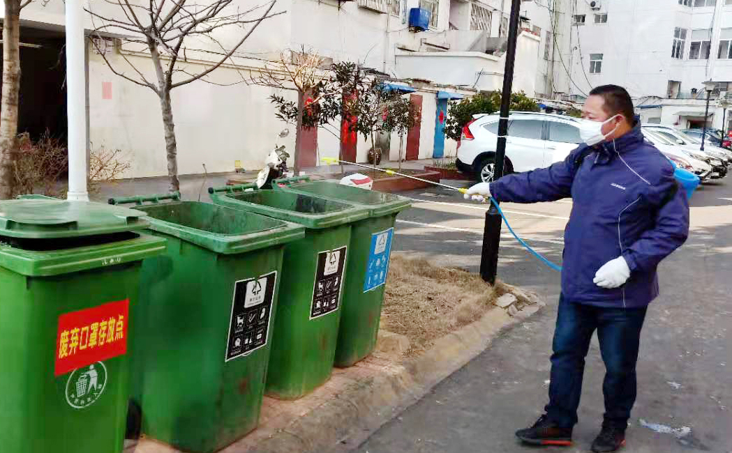 年初三开始,小区内全面实施严格消毒管理措施,刘佃宝与刘永明、王庆本三人主动承担了全小区的消毒水喷洒工作。楼道里、垃圾桶旁……不放过任何死角。几日来共计喷药消毒2万多平方米,他们用默默的行动为广大业主筑起一道坚固的生命防线。