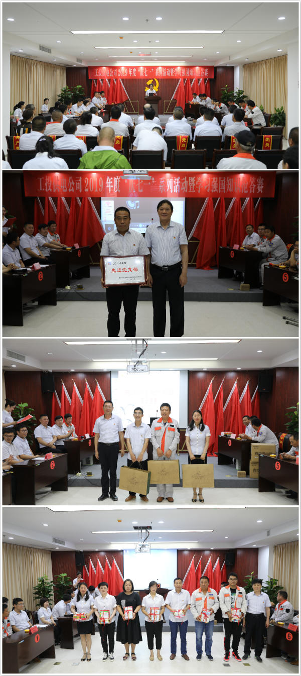 比赛期间,公司还为2018-2019年度先进党支部、先进党小组、优秀党务工作、优秀共产党员以及5、6月份《学习强国》支部月度积分冠军进行了表彰 。(电宣)