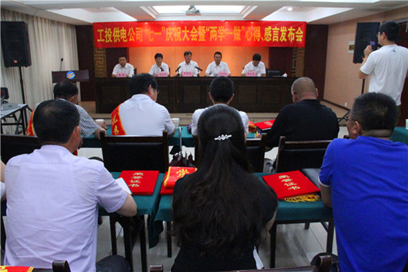 会上,公司党委书记吴再忠同志作了题为《发扬党的优良传统,建设富强工投供电》的讲话,他要求全体党员要缅怀党史、重温誓词,进一步增强党员责任感使命感。面对企业发展和电力改革的新任务、新要求,我们牢固树立大局意识,坚持以解放思想为先导,促进了观念更新的与时俱进,迫切需要公司党组织、全体党员通过推进党建工作创新,将政治核心作用转化为企业的领导力,将党的理想信念转化为企业的凝聚力,将党的方针政策转化为企业的发展力,将党的纪律作风转化为企业的执行力,将党员的先进性转化为企业的带动力;要统一思想、凝聚力量,进一步强化组织凝聚力发展力。要强化学习,不断提高引领发展的综合能力。健全机制,努力形成干事创业的用人导向。狠抓作风,牢固树立求真务实的良好形象,落实责任,切实担当战斗堡垒的历史使命。率先垂范,努力发挥共产党员的先锋作用;要总结成绩、坚定信心,进一步推动发展上台阶见成效。
