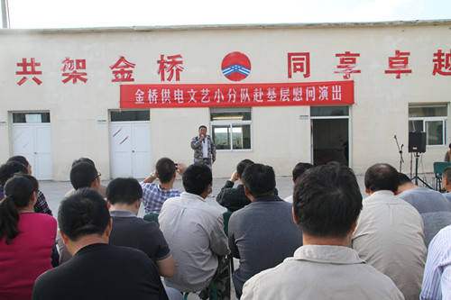 近日,为庆祝建国65周年,进一步践行党的群众路线,丰富基层职工文化生活,公司工会组织文艺小分队深入供电所等基层单位巡回慰问演出,为一线职工送去精彩纷呈的“文化大餐”,赢得了基层职工群众一致好评。 在临时搭建的舞台上,文艺小分队自编自演的的歌舞、相声、诗朗诵、器乐弹唱等丰富多彩的节目,贴近基层,贴近生活,讴歌金桥供电十年成就,展示金桥供电职工风采,赢得了现场观众阵阵掌声。中间还穿插了击鼓传花观众互动节目,基层职工踊跃参与,气氛活跃。最后,演出在会场全体人员齐唱《歌唱祖国》中圆满落下帷幕。 公司自成立以来,一直注重企业文化建设,利用多种形式活跃基层文化生活,满足员工多层次、多角度的精神需求。不仅加强基层单位“职工小家”建设,建立了“职工书屋”、职工活动室、乒乓球室、羽毛球活动场地等基础设施,还举办了职工运动会、篮球赛和文艺演出等活动。不仅发挥传统职工文化活动的优势,而且还创新具有时代特色文化活动的形式,不断增强员工的凝聚力和向心力。通过本次深入基层慰问演出,不仅为战斗在一线的基层职工献上一份精神“大餐”,同时也展示了金桥供电的良好作风和企业形象。(赵艳)