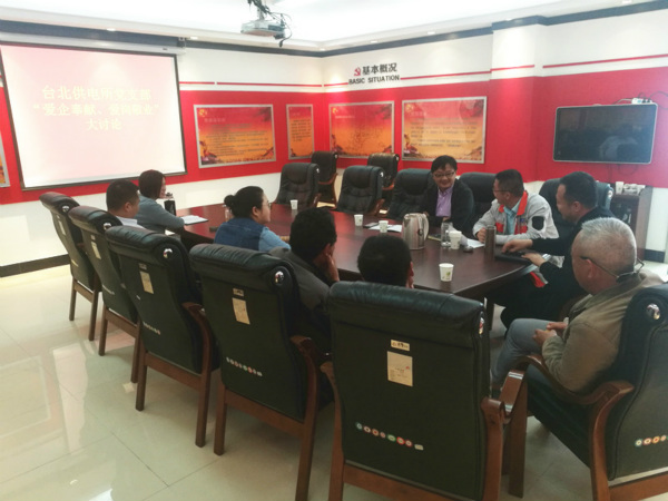 台北供电所党支部在5月25日召开“爱企奉献、爱岗敬业”主题讨论会,结合经理助理徐磊、集团劳模于广兵等优秀党员亲身讲解先进事迹,广泛征求生产经营、改革发展的好办法、好建议,组织党员干部直面问题、凝聚共识,为企业健康发展建言献策。(钱明华)