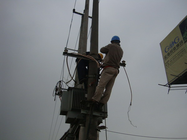 随着开发园区基础建设逐步推进,园区内配电工程量呈现平缓下降趋势,该所响应公司号召,积极开拓园区内企业电力外包服务业务;他们努力转变服务作风,完善服务职能,为用户提供高效优质服务,并主动与开发区工业园区内的企业进行联系,扩大服务门路,想方设法拓展供电区域。目前,该所已发展长期上门电力服务企业10家,实现服务费收入二十余万元。图为台北供电所职工正在为金海投资集团公司进行线路维护服务(李吉成)