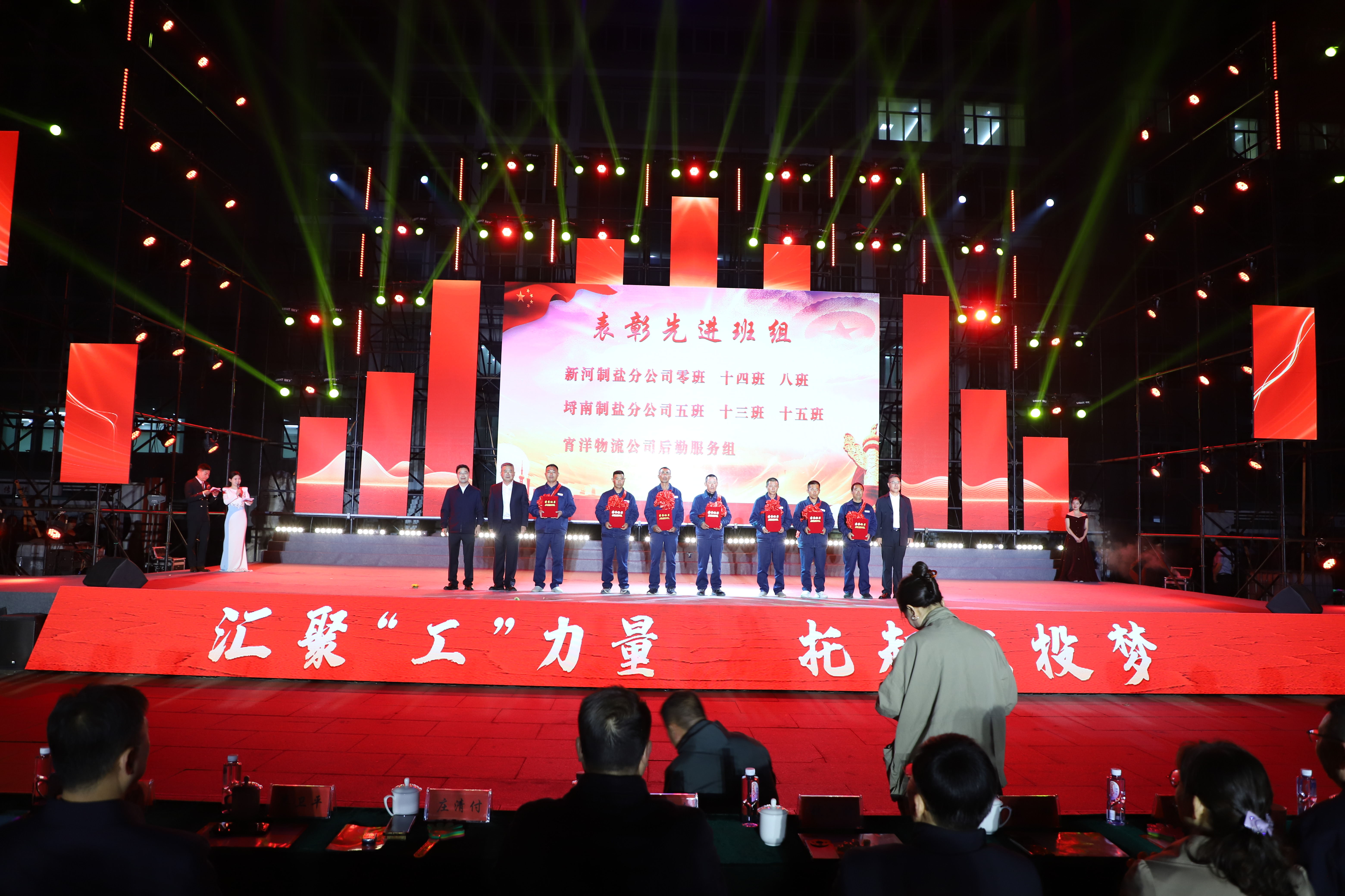 本次文艺汇演有歌舞、三句半、音乐快板、朗诵、相声、歌曲串烧、歌曲独唱、大合唱等丰富多彩的节目,其表演形式和精彩内容引人入胜,火热绚丽的舞台、贴近职工生活的节目内容、公司热火朝天的奋斗场景,呈现了灌西人对企业的深沉情感和对工作生活的激情与热爱。演出在开场群舞《盛世欢歌》拉开帷幕,整个演出分为“礼赞·劳动最光荣”“铸魂·劳动最崇高”“闪耀·劳动最美丽”“辉煌·劳动最伟大”四个篇章,三句半《凝心聚力谱新篇》、舞蹈《沸腾的盐滩》、音乐快板《后发先至看工投》等都是灌西职工自编自演的节目,充分展现了灌西员工朝气蓬勃、奋发向上的精神面貌,以及对公司创新发展、职工幸福安康的美好祝愿。灌西公司党委书记、董事长孙政权和金航公司党总支书记、总经理庄清付分别登台献艺,为大家表演了歌曲独唱《我是一条小河》和配乐诗朗诵《我骄傲,我是中国人》,得到职工观众们热烈的掌声。小合唱《咱们工人有力量》、大合唱《新时代新家园》《没有共产党就没有新中国》等节目把现场的气氛推向了高潮,有力展现了全公司职工们激情澎湃、昂扬奋进的精神面貌。在文艺演出中间,还分别对公司各条战线的劳模先进代表、先进单位、部门和班组进行了表彰。(西宣)
