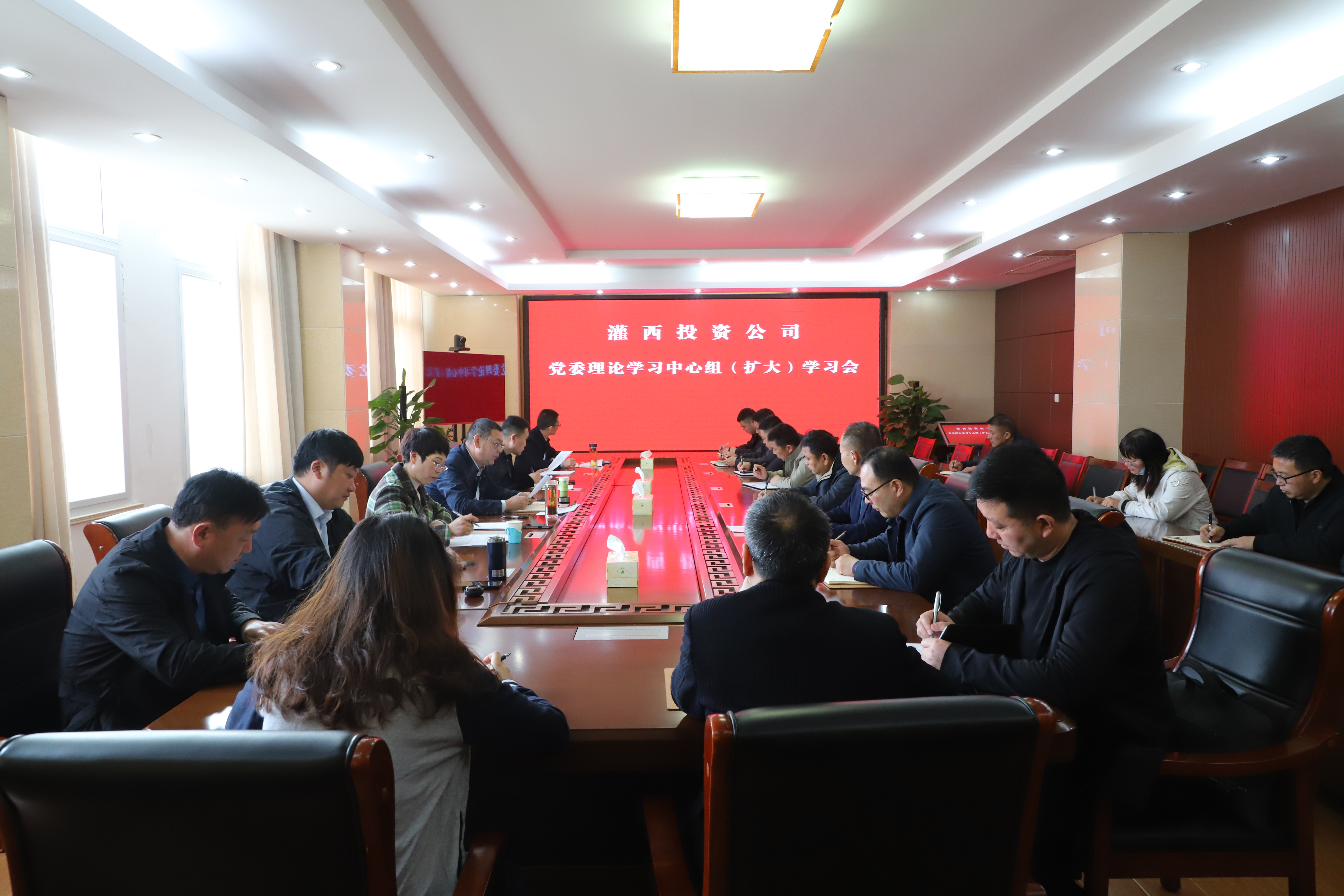 4月16日,灌西投资公司以党委理论学习中心组扩大学习会形式对党纪学习教育工作进行了动员部署,深入学习贯彻习近平总书记关于党纪学习教育的重要讲话重要指示精神,认真落实党中央、省市委及集团党委关于推进党纪学习教育的安排部署,动员部署灌西公司党委党纪学习教育工作,进一步加强党纪教育,为推进全面从严治党、营造风清气正的政治生态奠定坚实基础。公司党委理论学习中心组成员及各支部书记参加学习。