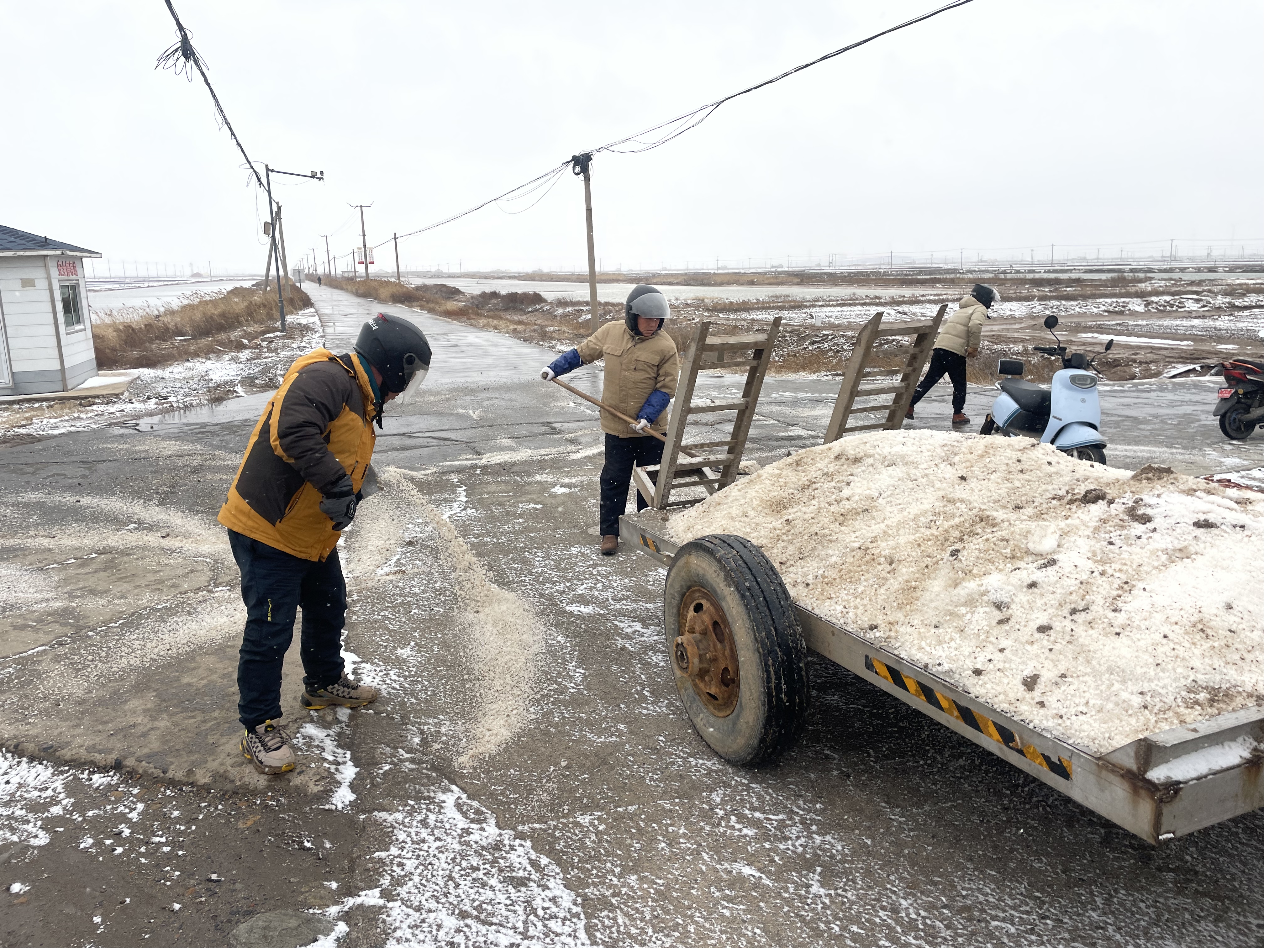面对冰与雪的考验,行动就是最好的融雪剂,大家手持铁锹,积极清理辖区内的路面积雪,忙碌的身影成了盐场里一抹靓丽的风景线。低温降雪天气还在持续,公司将继续发挥党员先锋模范带头作用,整合力量,做好辖区扫雪除冰工作,加大风险排查力度,对重点区域进行提前工作铺排,为职工群众安全出行保驾护航。(西安西宣)