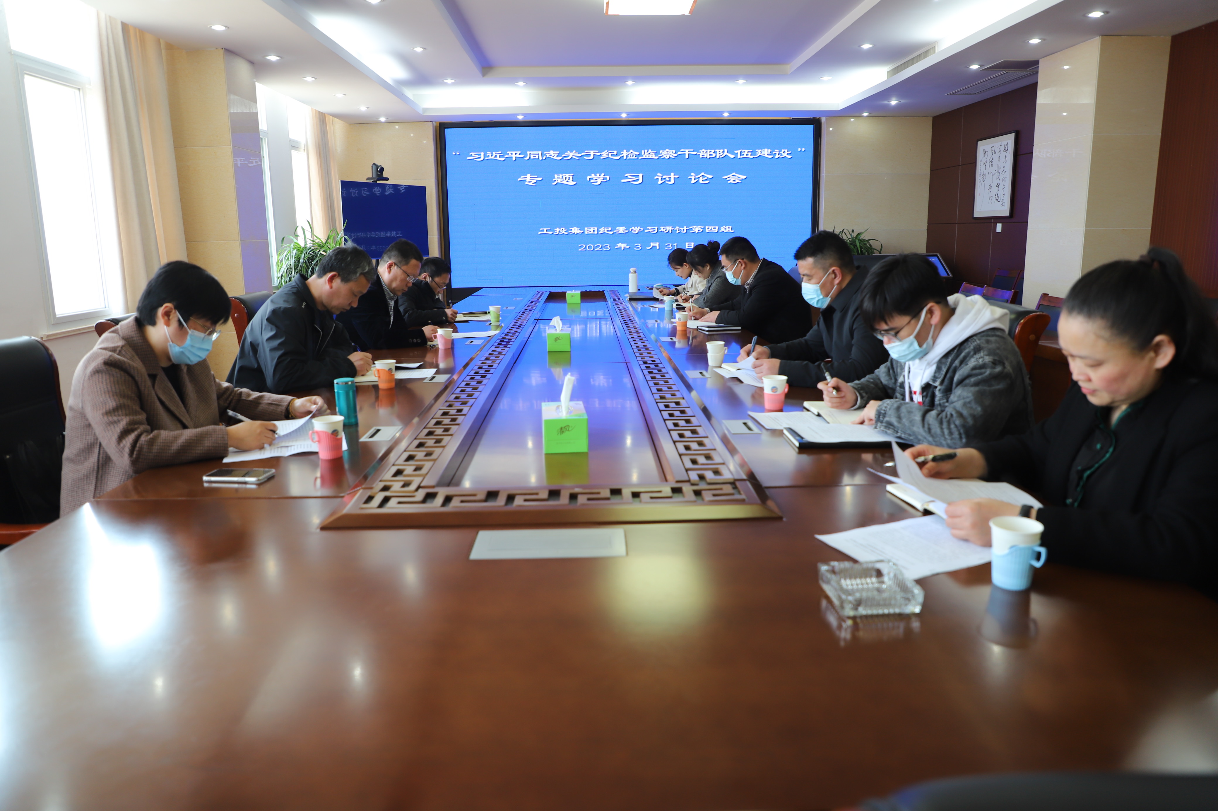 2023年3月31日,工投集团纪委第四研讨组全体成员在灌西投资公司三楼会议室召开“习近平总书记关于纪检监察干部队伍建设”专题学习讨论会,第四研讨组组长王克平书记主持会议。