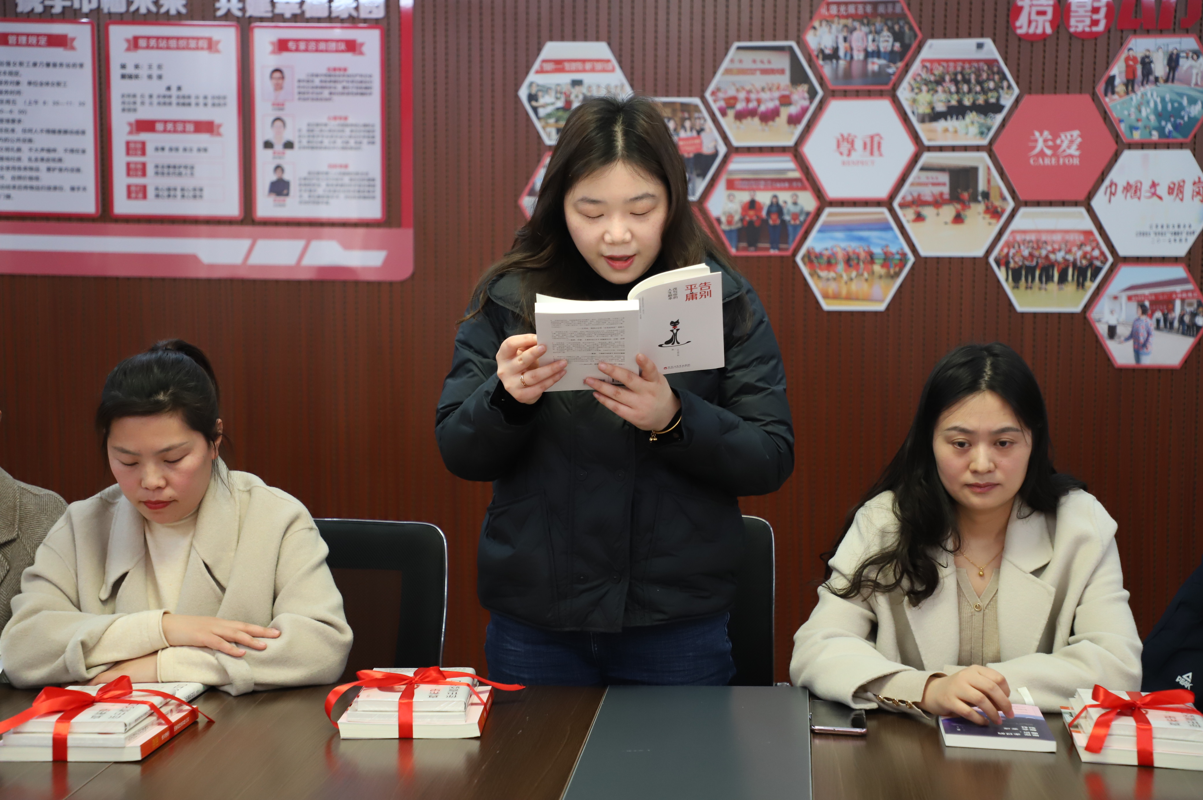 来吧,来吧,相约三八。相约在春光明媚的三月里,相约在阅读分享的文韵里,相约在康乃馨服务站里......。3月7日下午14:00,公司工会开展的“巾帼心向党”主题读书分享会在女职工朗朗的诵读中拉开帷幕。来自公司各条战线上的女职工们从教育、文学、哲学、健康等方面内容,进一步抒发家国情怀,弘扬时代精神,给我们带来了一场听觉盛宴。塑造知识型的“她”,并为女职工赠送有关红色主题、女性励志等方面的书籍,在广大妇女中营造“好读书、读好书、读书好”的良好氛围,促进家庭文明、社会和谐。