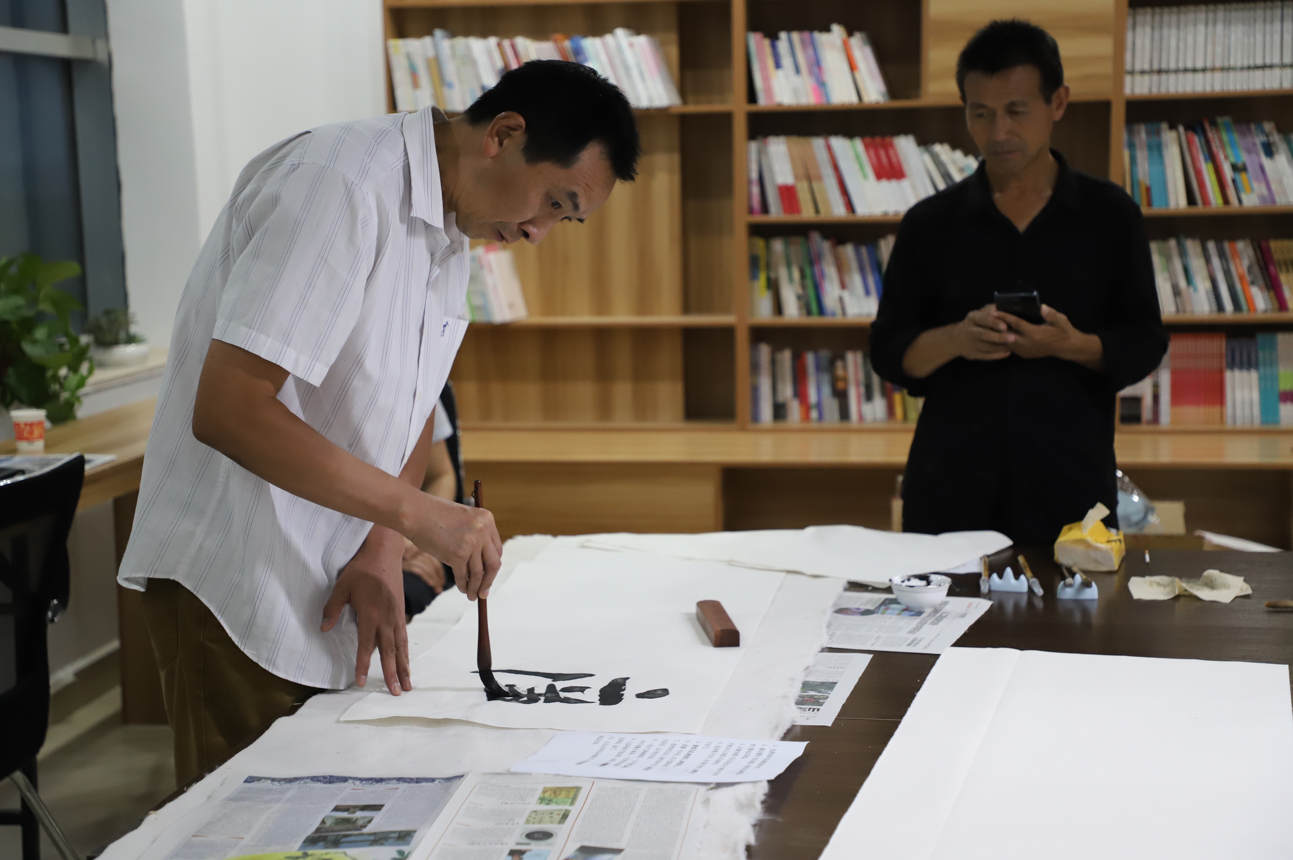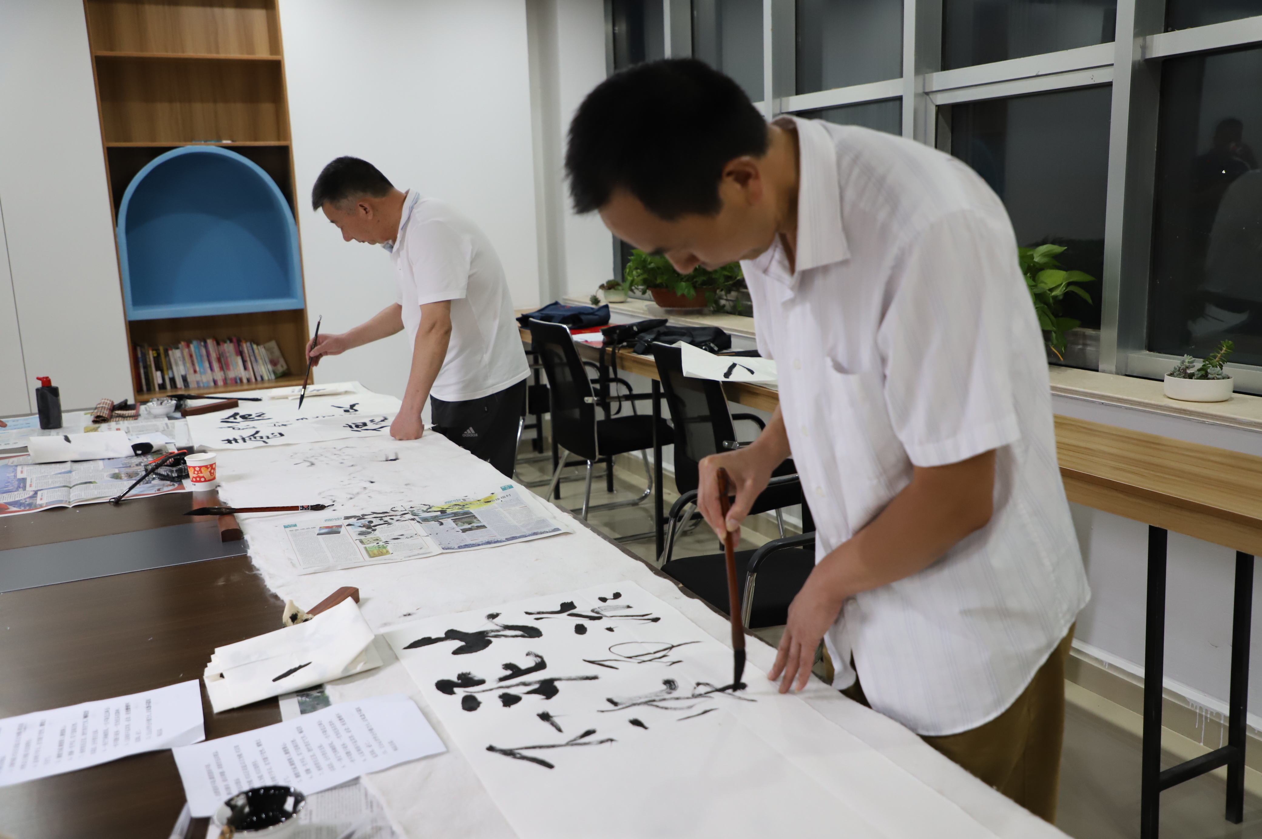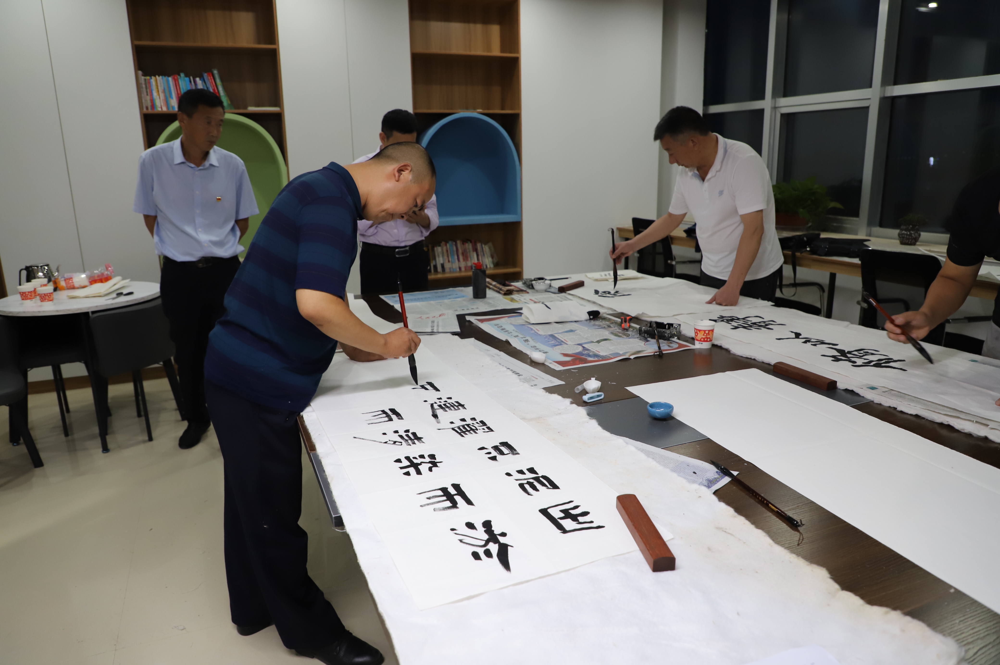 书画笔会邀请县书画家协会的6名成员到场泼墨挥毫,以围绕“迎国庆庆祝建党百年”为主题,书写爱党华章,歌颂党的百年光辉历程,着力引导党员干部“守初心、践使命”。