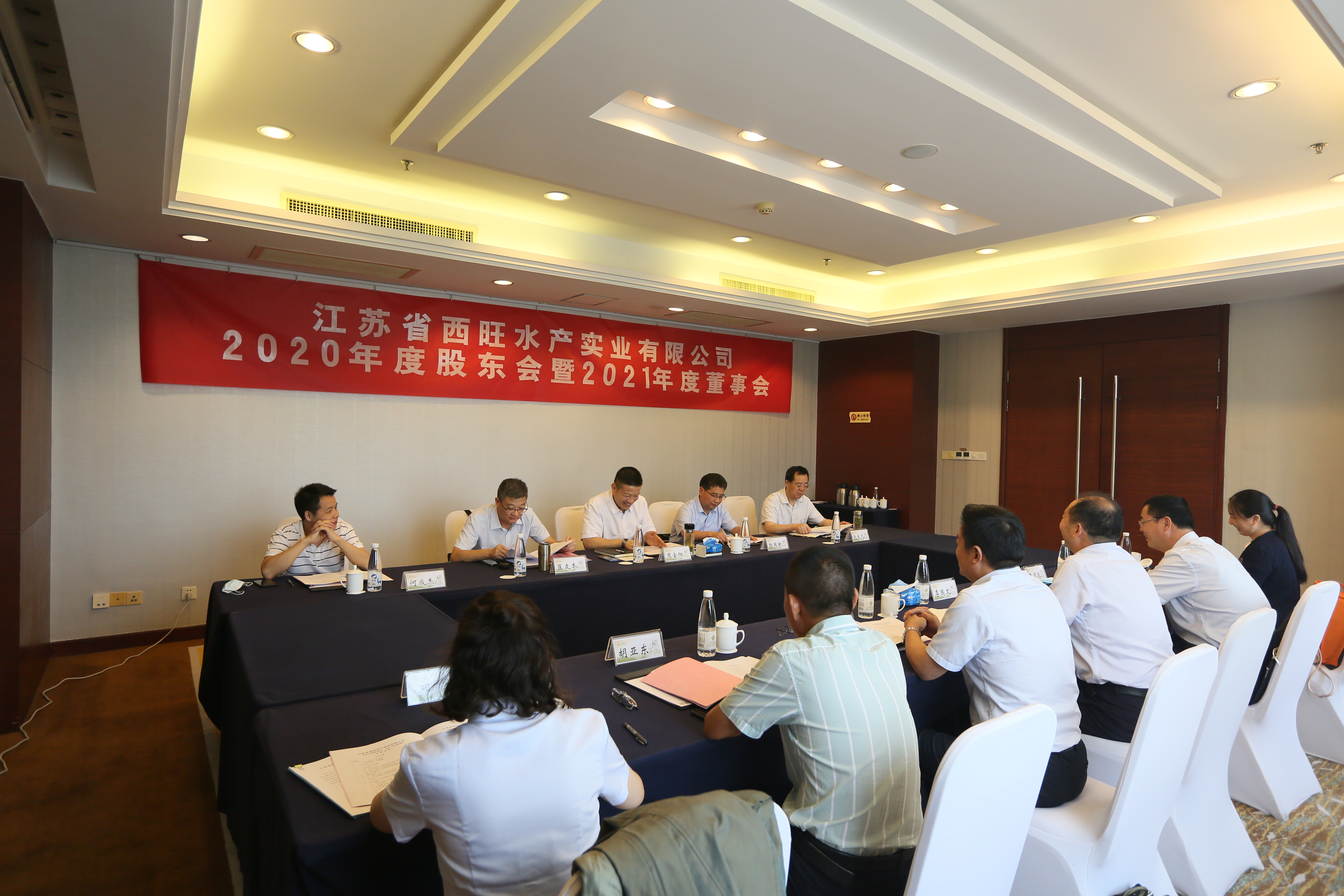 9月27日,江苏省西旺水产实业有限公司2020年度股东会暨2021年度董事会在连云港市金陵云台宾馆四楼会议室召开,省沿海开发集团党委副书记、总经理周金阳,省沿海开发集团党委委员、副总经理赵良元,省沿海开发集团投资发展部副总经理何成杰,市工业投资集团党委委员、常务副总经理杨国新,市工业投资集团党委委员、总会计师匡友本等股东代表、董事代表出席了会议。