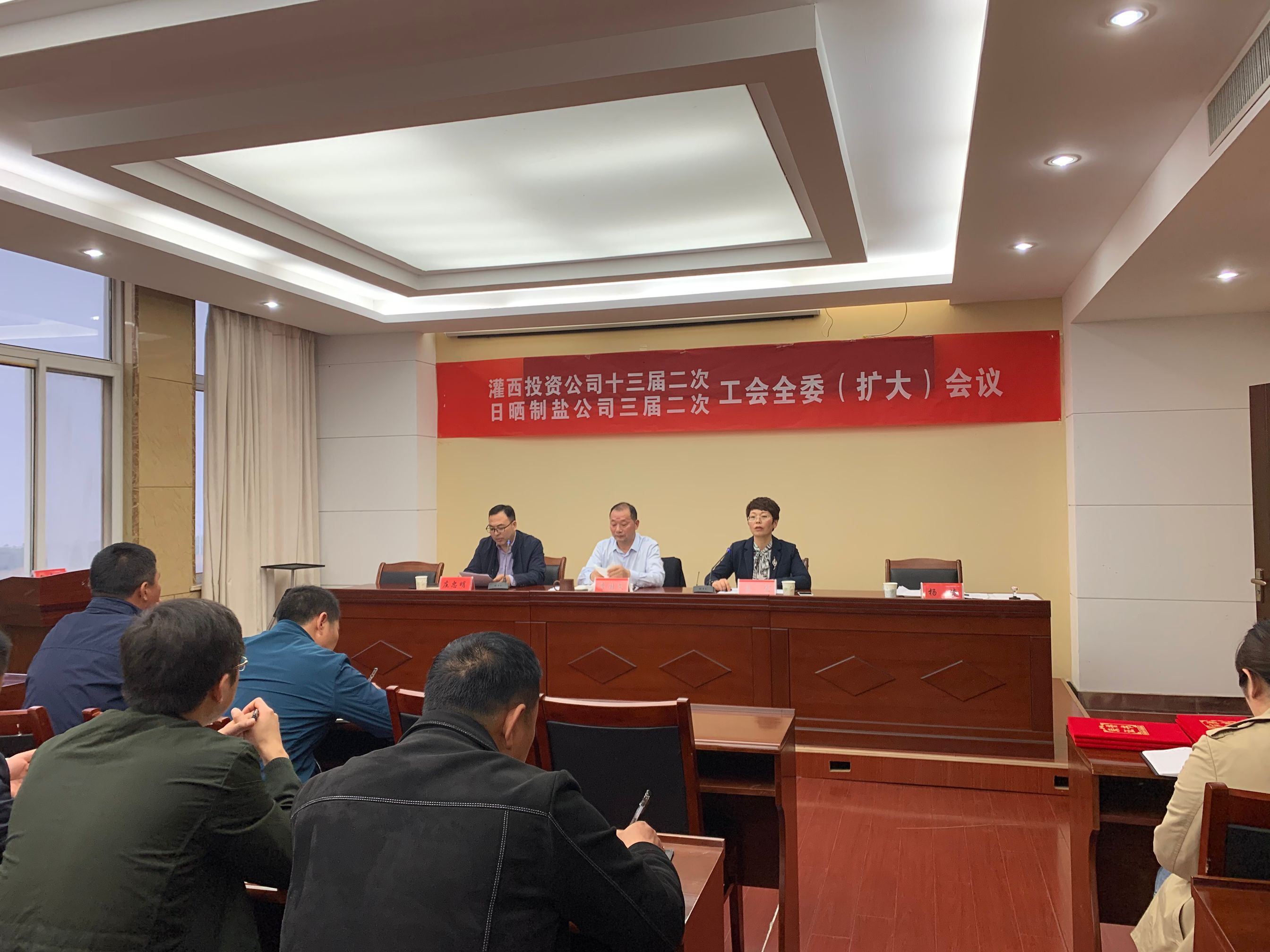 428日,灌西投资公司召开十三届次、日晒制盐公司三届次工会全委扩大会议,公司党委书记、董事长、总经理李国文出席会议并讲话,工会主席王宏作工作报告。工会委员会全体委员,各单位工会主席、女工委主任参加会议。
