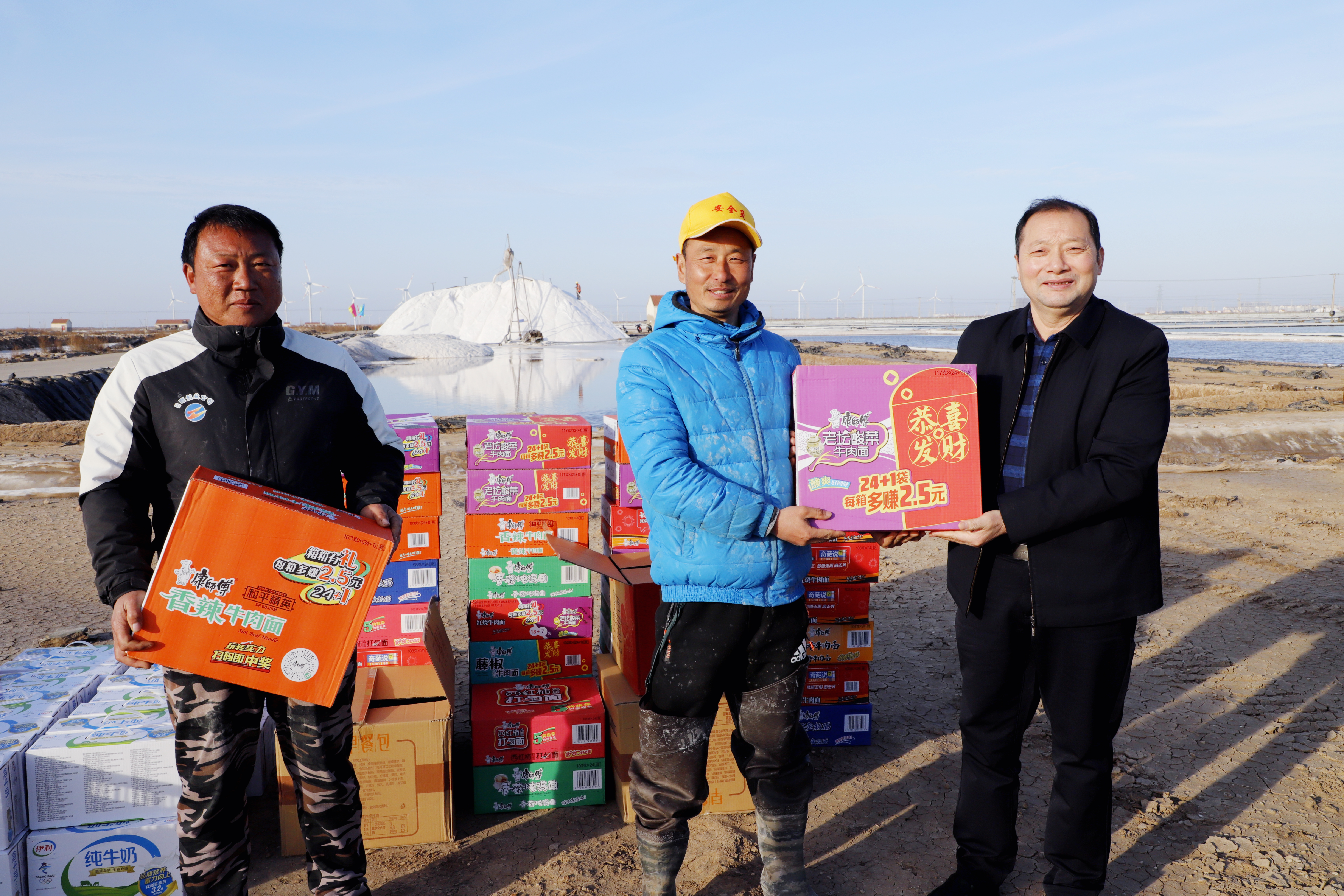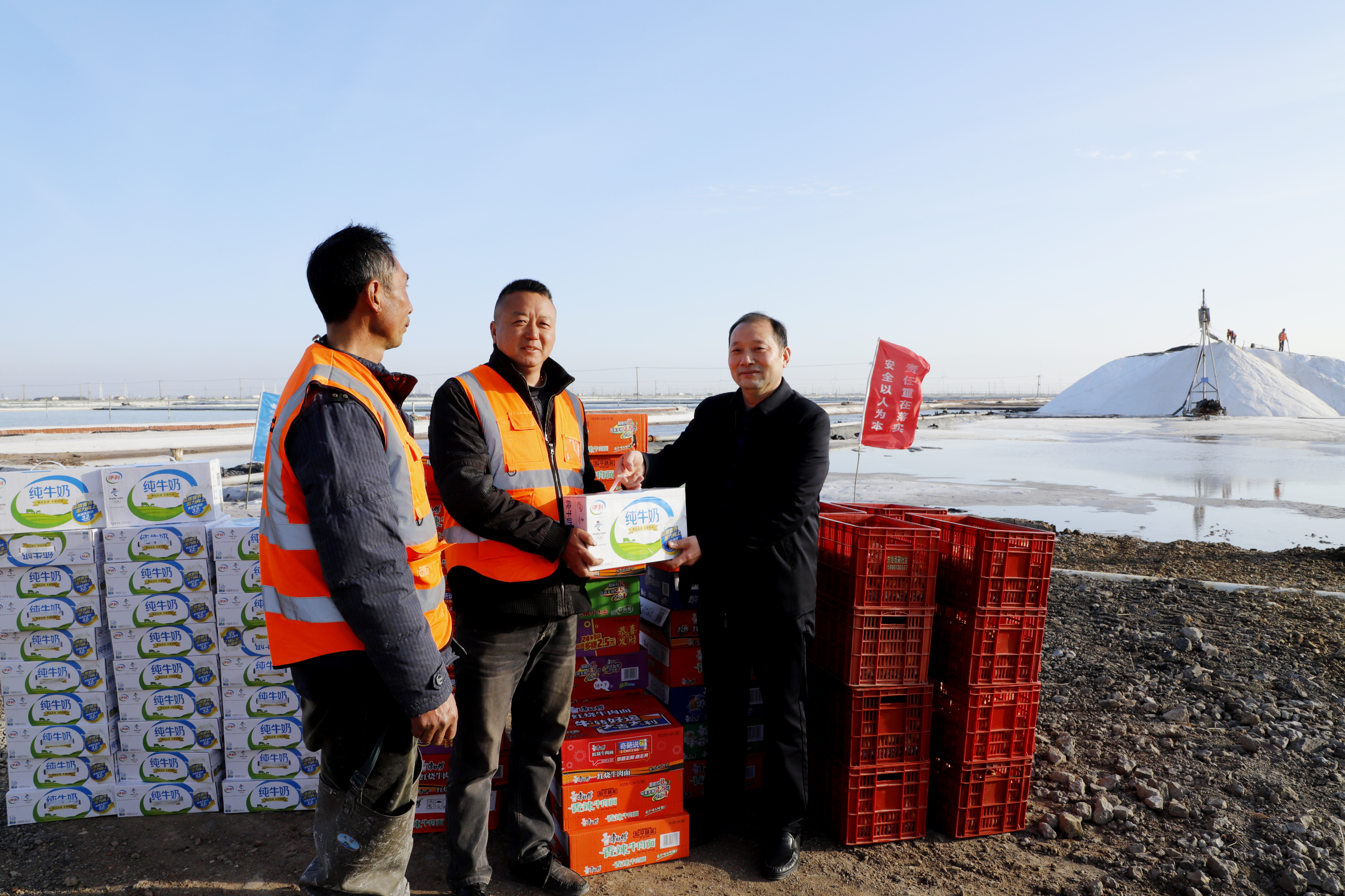 “你们辛苦了,我代表公司党委来看望大家。”每到一处,李国文都与扒盐现场职工握手问好,感谢广大职工在过去的一年为日晒制盐公司的原盐生产所付出的辛勤努力,同时嘱咐扒盐职工要增强责任感和警觉性,严格执行各项规章制度,切实保障扒盐期间的安全生产,并送上慰问品。