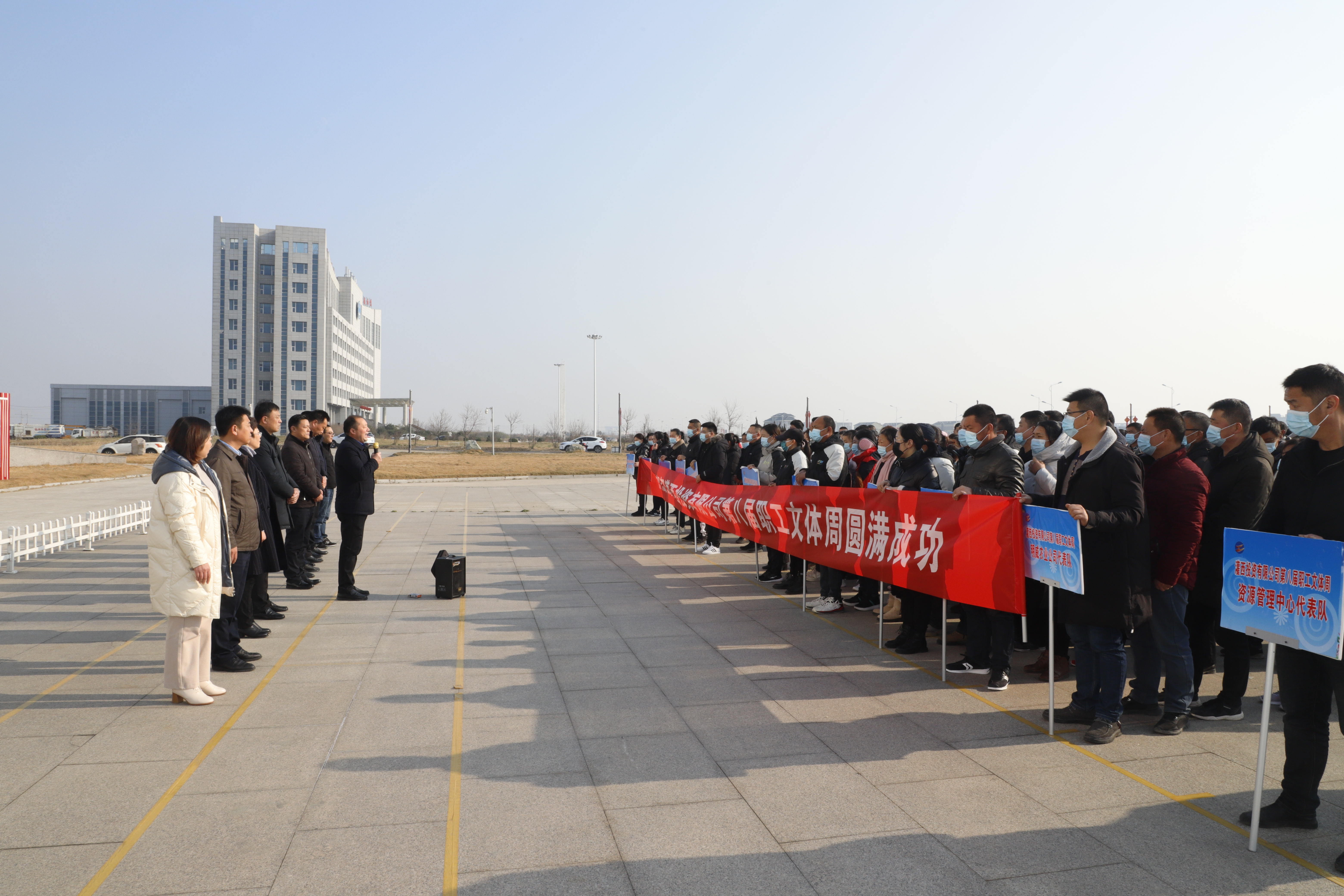 12月22日,灌西投资公司在机关大楼前举办迎新年“第八届职工文体周”活动。来自公司各条战线的近500余名职工将参加本次文体周活动。公司党委书记、董事长、总经理李国文致开幕词,党委副书记、工会主席王宏宣布本次职工文体周开幕。