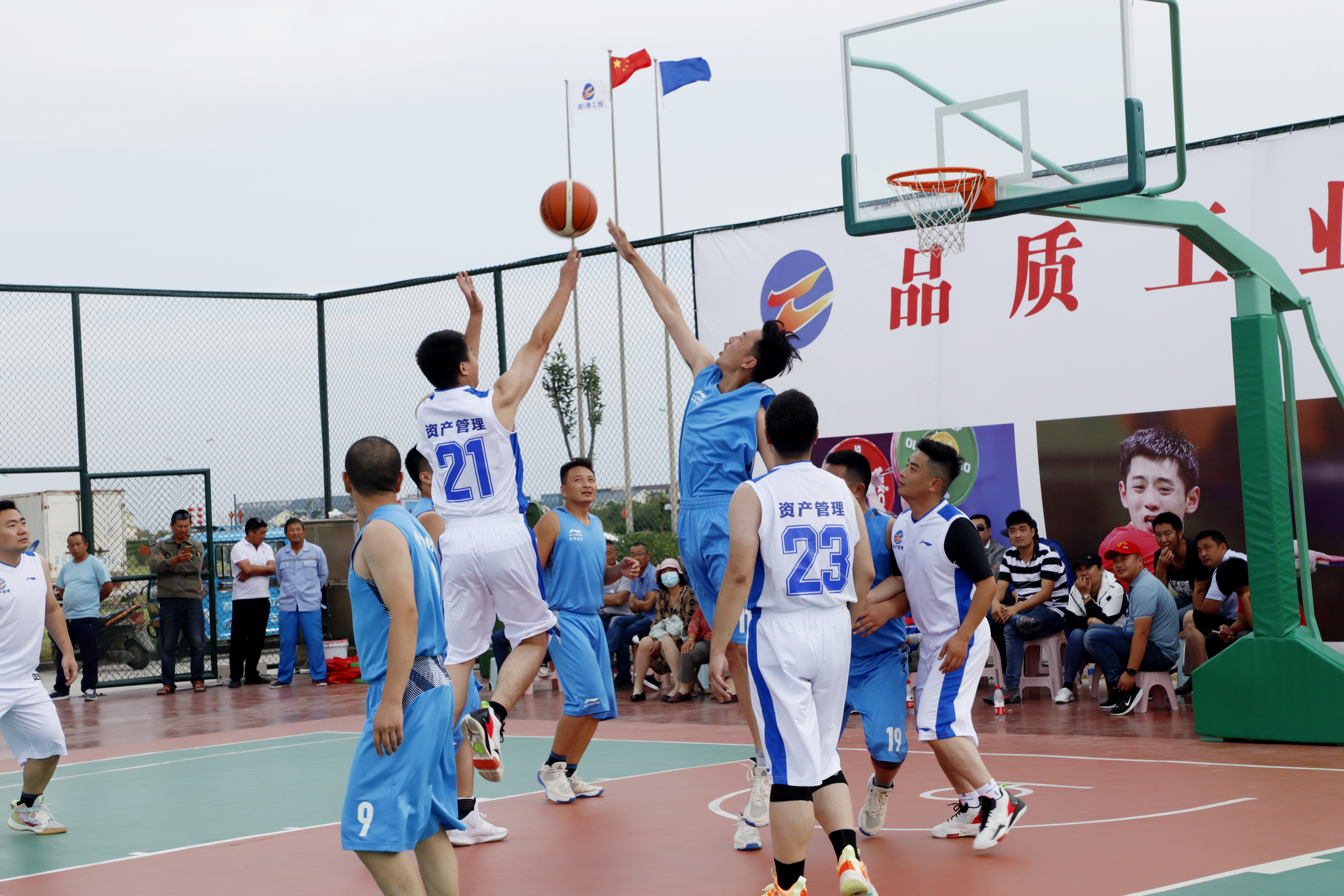 下午最后一场比赛是金桥制盐公司对战资产公司,首节比赛两队互有攻防,金桥制盐代表队5号,行动迅速,利用快攻屡屡得分,21号身强体强壮主攻篮下,21:1结束半场;下半场资产队积极组织进攻,虽然分数落后,但是依然不放弃,敢打敢拼,利用远投补足篮板弱项,最后还是以14:47败北。(靳静)