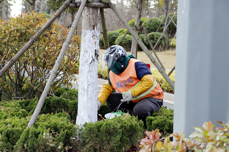 开展冬季树木虫害防治工程。按照不同植物的生长特点,分类修剪。模纹、绿篱、球类植物在保持原有层次造型的基础上进行精细化修剪;花灌木、小乔木顺其树势适当修剪,剪除砧木萌生枝条,枝条茂盛的灌木可适量疏枝,去除枯枝病枝、过密枝、乱生枝和残花败果,并尽量保持苗木自然生长状态;乔木根据需要进行适当疏枝,剪除枯枝、弱枝和病枝,刮除在树皮缝、树疤内、枝杈处的越冬害虫、病菌,并对树木进行涂白处理,减少明年病虫害发生基数。(张明建)
