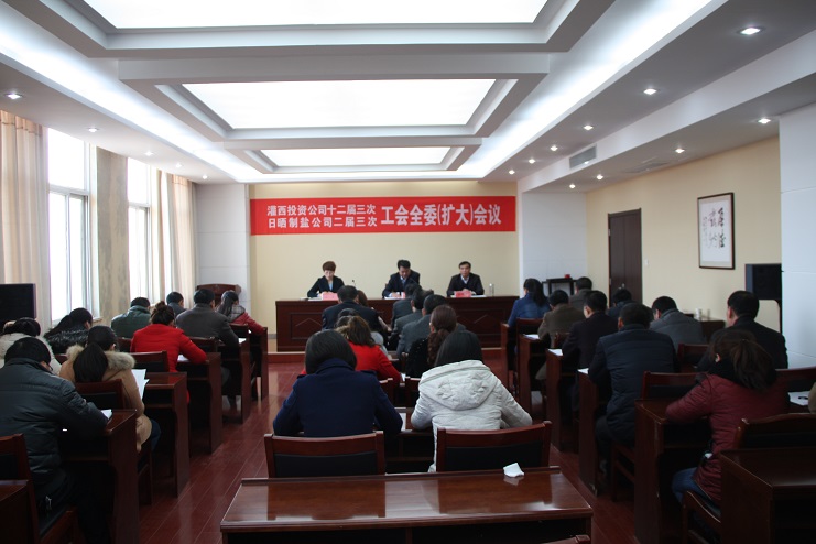 3月24日上午,公司工会在机关四楼会议室召开灌西投资公司十二届三次、日晒制盐公司二届三次工会全委扩大会议,各单位的工会主席、女工主任及受表彰的先进个人参加会议,党委书记、董事长王德志、工会主席王保平出席会议,会议由投资公司工会副主席、女工主任王宏主持。
