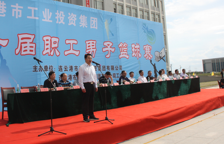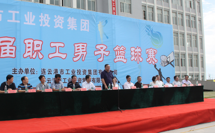 集团公司董事长、党委书记杨龙宣布,连云港市工业投资公司集团第一届职工男子篮球赛正式开幕。