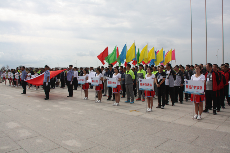 9点整开始举行开幕式,在雄壮的《运动员进行曲》中,8名司旗手分别手托国旗和集团公司司旗,24名彩旗手高举五彩旗首先入场。紧接着,灌西代表队、台北代表队、供电代表队、黄化制钙代表队、利海代表队、氯碱代表队、徐圩代表队、机关代表队、华茂代表队、房地产代表队、氨纶代表队、新材料代表队12支代表队、130余名运动员以及裁判组成员依次入场。