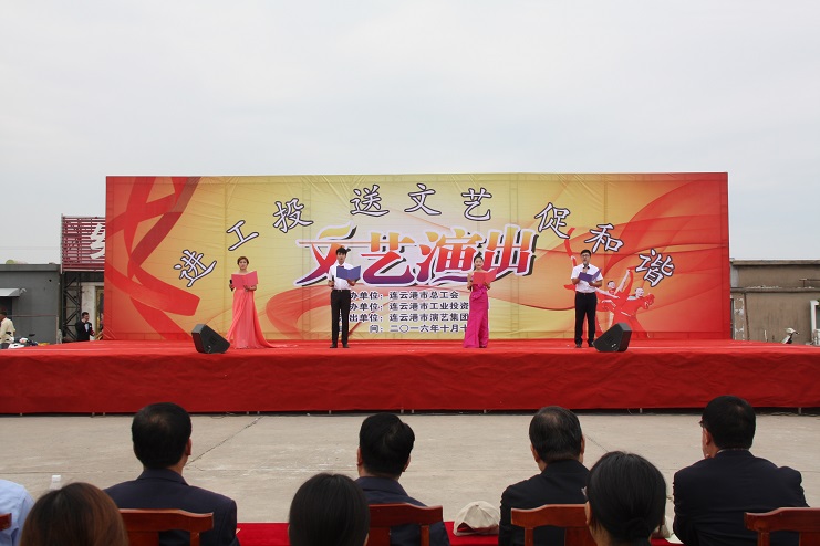 11日下午,灌西职工文化广场人头攒动,气氛热烈,“进工投送文艺促和谐”文艺演出在此举行。此次演出由市总工会、连云港市工投集团主办。市总工会副主席陈健、工投集团公司工会主席戴鸿鸣、灌西投资公司领导及职工群众1000余人观看演出。
