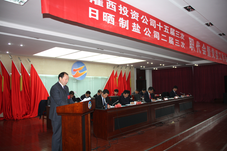 2月22日,灌西投资公司十五届三次、日晒制盐公司二届三次职代会暨党委工作会议在联合服务中心五楼会议室胜利召开。来自两大公司各条战线的90余名职工代表、特邀代表、列席代表齐聚盛会,共商公司发展大计。