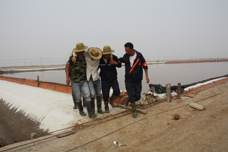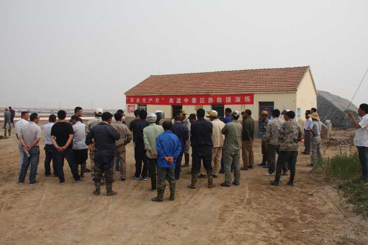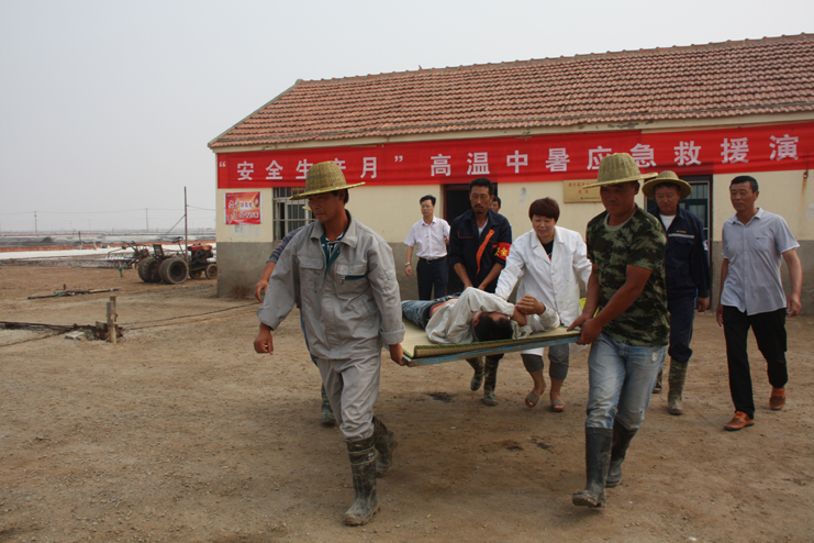 为了加强公司全员的安全预防意识,增强应对紧急事件的自我保护和防卫能力, 6月29日上午,灌西投资公司在新河制盐分公司九班联合举行“高温中暑应急救援演练”活动,公司副总经理古浩光、各单位分管安全领导、日晒制盐一线班组长参加观摩。