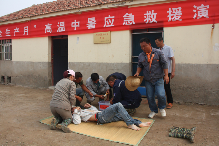 在这次的安全演练活动中,投资公司运营监管部部长李长军主持了这次的安全演练活动,新河制盐分公司九班全体员工参与演练。演练模拟现场,气温高达32.度,天气闷热,让人透不过气,滩上几名工人正在头排格劳动,有的在整理塑料绳,有的在整理防风布,其中一名蹲在格堰旁边整理防风布的男工,在直起身来擦汗时,突然晕倒,瘫坐在格堰旁,旁边的工人连忙停下手中工作,将病员扶平躺下,同时喊班长来。在班长的指挥下,几人一齐将病人扶到值班室前通风处,一边为病人降温、喂藿香正气水和淡盐水进行救护,一边逐级向公司安全负责人汇报情况。公司领导来到现场了解情况,查看病情,拨打急救电话组织施救,并向公司运营监管部和领导报告。在救援过程中,大家各司其职,齐心协力,配合默契,有条不紊成功完成了此次演练活动。通过这次应急演练,进一步提高了公司员工应对紧急事件的自我保护和防卫能力,保证员工在发生突发事件时,能熟练应对、有序救援,最大限度地减少事故带来的损害,切实保护员工的安全。