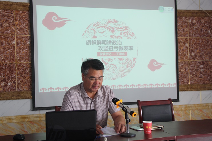 7月20日下午,投资公司党委书记、董事长王德志围绕“旗帜鲜明讲政·攻坚扭亏做表率”这个主题,在生产服务公司会议室为日晒制盐片区党员干部上专题党课,强调各级党组织和广大党员干部要全面落实省市委最新部署要求,切实增强旗帜鲜明讲政治的思想自觉和行动自觉。