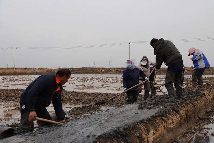 11月29日上午,虽然天气寒冷,但是在海盐基地新改造的制卤滩上,却到处是一派火热的劳动景象,参加“大会战”的工人多达100余人,只见他们有的泼水,有的铲泥,有的捞沟,有的做埝,大家分工协作。据了解,为了提高海水制卤能力,确保海盐产量,今年公司专门对海盐基地部分废弃滩地进行了改造,以进一步增加制卤面积。近期,随着改造工程接近尾声,公司又组织精干力量对新改造滩地继续进行修整,以确保新建的制卤滩地能够尽快投入使用,为明年海盐生产工作的正常有序开展奠定扎实的基础。