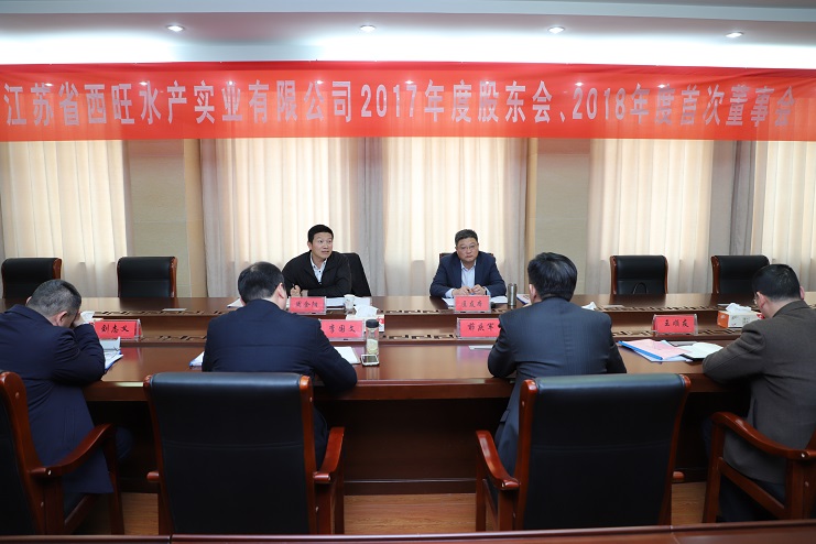 3月22日,江苏省西旺水产实业公司2017年股东会、2018年第一次董事会在投资公司三楼会议室召开,省沿海开发集团党委委员、副总经理周金阳,连云港市工业投资集团党委委员、总会计师匡友本等股东代表、董事代表出席了会议。
