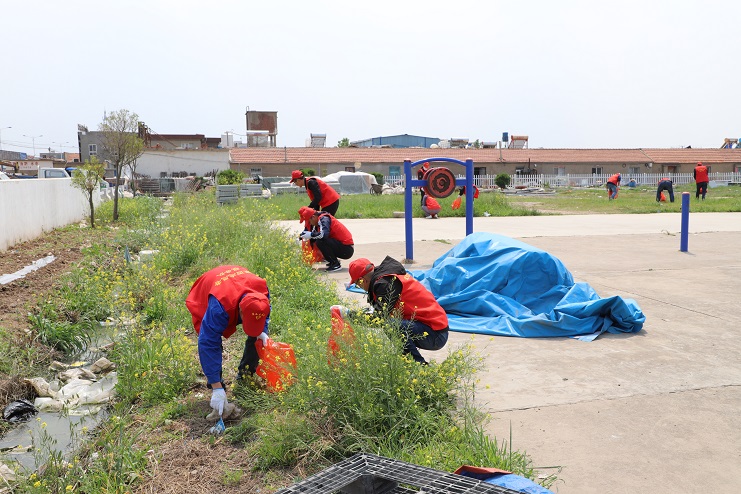 活动中,青年志愿者们头戴小红帽、身穿印有灌西志愿者服务队字样的红色马甲,在阳光的照耀下显得格外醒目。参与此次活动的青年志愿者们早早的就来到了劳动现场,她们手持铁锨等劳动工具,认真对职工文化广场及其周边排水沟道中的垃圾进行清理。虽然现场不时发出阵阵恶臭,但是大家依然坚持将垃圾全部清理干净,为生活在周边和早晚在此锻炼的居民营造一个干净、整洁的居住环境。