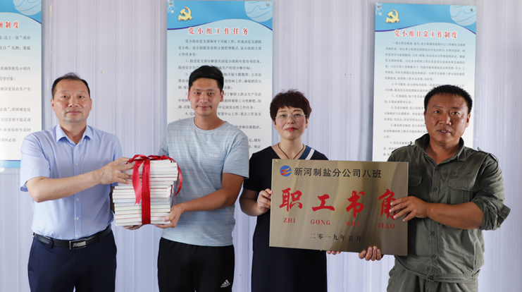 为鼓励和支持员工不断更新知识,激发员工自我学习的能力,提升班组核心竞争力,7月2日上午,灌西公司党委书记、董事长、总经理李国文,党委副书记、纪委书记、工会主席王宏为日晒制盐班组赠送图书并授牌。