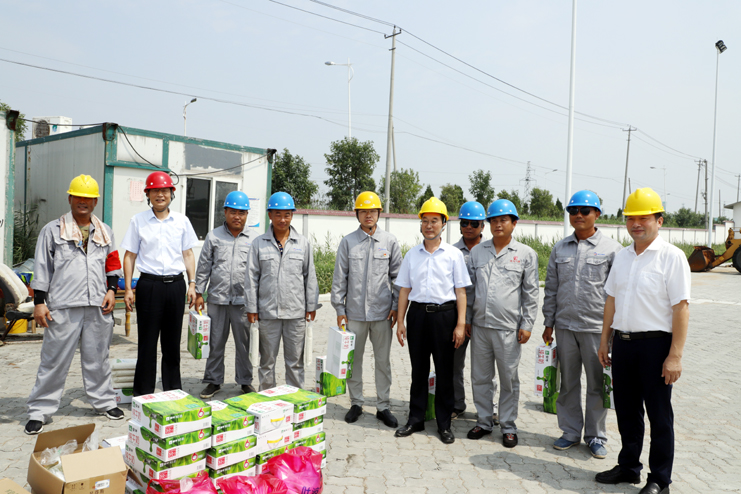 在灌西宵洋公司五灌河码头作业现场,胡建明代表集团公司向在一线的码头工人们表示深切的感谢和慰问,感谢他们在烈日下为集团所付出的辛劳,并叮嘱码头工人避开高温时段,科学合理安排好作业时间,既要保证生产作业质量和进度,又要注意高温生产作业安全。