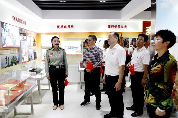 上午9点10分,随着百名人员的陆续登岛,往日宁静的开山岛突然热闹起来,红旗飘舞,歌声飞扬。沿着山梯而上,重走全国“人民楷模”、“最美奋斗者”、优秀共产党员王继才同志生前的巡岛路线,追寻英模足迹;参观“开山岛夫妻哨所事迹展示馆”,瞭望台、生活间和营房,实地感受王继才夫妇在环境异常恶劣的开山岛上,以岛为家、与海为邻,舍家为国、不畏艰险,32年如一日坚守海防事业的奉献精神;在开山岛最高处的国旗广场上,党员们一起观看守岛民兵升国旗,组织开展重温入党誓词仪式,教育引导全体党员不忘初心,牢记使命。