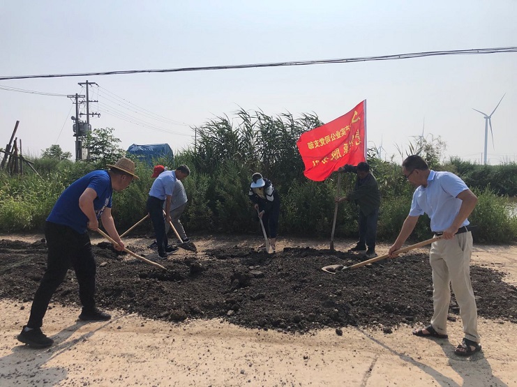 接下来,党支部书记张文连带领全体党员前往一线鱼塘参与义务修整鱼塘道路活动,对鱼塘的主、支道路进行修缮,每个党员亲身参与其中,为建设美丽西旺贡献自己的一份力量。