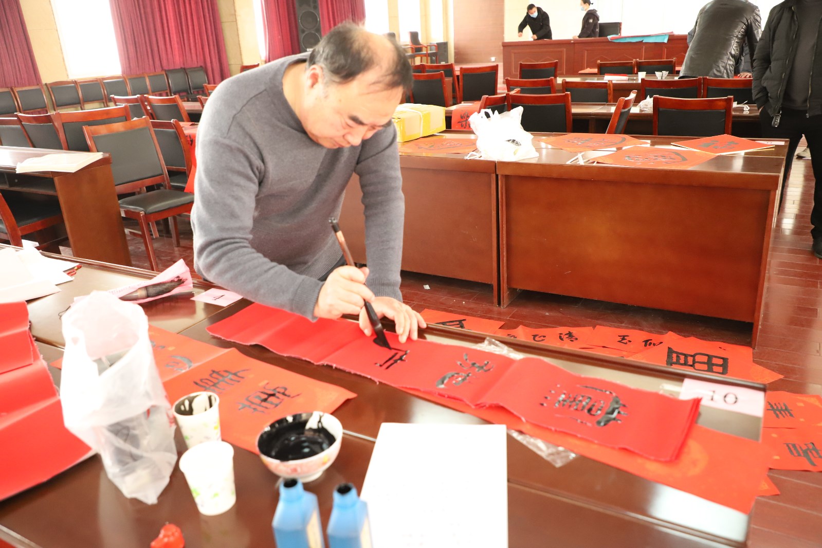 为弘扬春节传统文化,传播清风廉韵,让“廉味”守住“年味”,守好“节点”过“廉节”,1月25日,灌西投资公司纪委在机关五楼开展“有严有味”迎新年书写“廉”联活动,邀请到县书协书法名家现场挥毫泼墨,把年俗文化、清廉文化等文化资源进行串联,为广大党员干部群众送上了一道别具“廉味”和“年味”的新春文化盛宴。