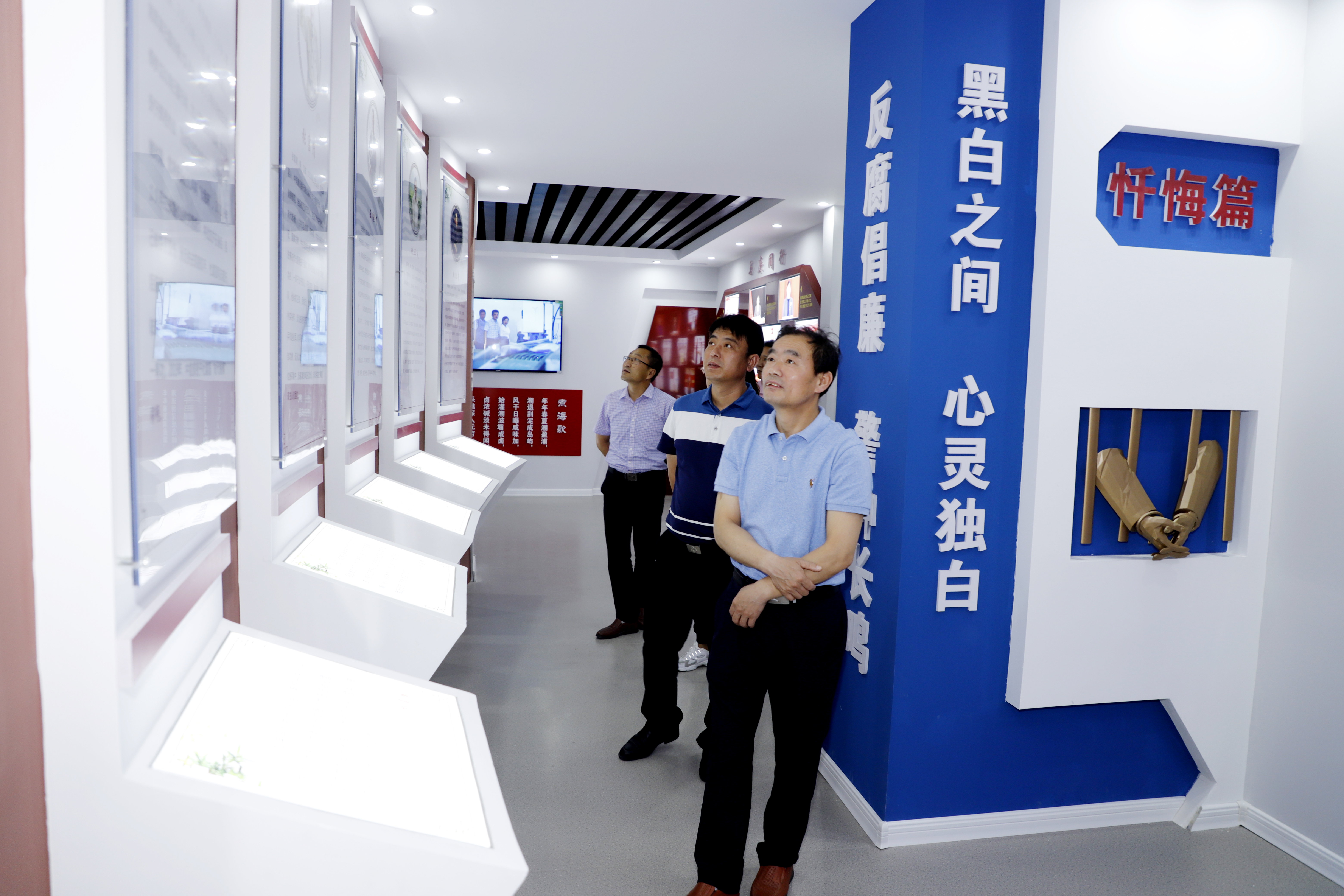 在“盐情廉韵”廉政展厅,房地产公司一行通过版面介绍、VR投影展示、警示教育专题片详细了解了展厅板块内,随后一同参观了廉政教育室、廉政谈话室、检企共建室等。