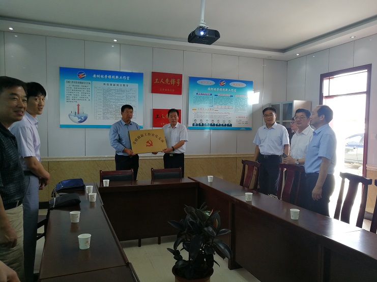 7月11日下午市总工会党组书记丁维杰一行来安树林劳模创新工作室莅临指导,集团公司工会主席刘承志,投资公司党委书记、董事长、总经理李国文,纪委书记、工会主席等陪同指导。