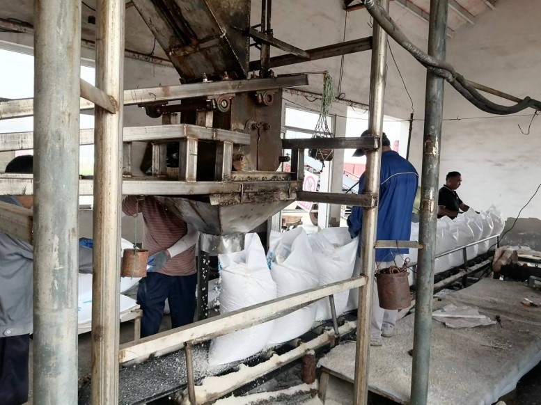 清晨,车辆到达作业场地,工人就开始忙活,首先将盐倒入盐槽,颗粒大的盐块要用铁锤粉碎,然后皮带机输入进行精制加工称标准数量,用缝包机缝好,工人在车上用肩,大家轮流替换,将一袋袋百十斤的食盐码好,摆放整齐,每个环节马虎不得,忙的时候员工一干就是十多个小时,一天的工作量高达好几百吨,毅力和体力都面临着严峻考验,即便如此,筑包人无怨无悔,他们用实际行动,诠释了甘于奉献劳动之美!(宵洋物流胡秀同