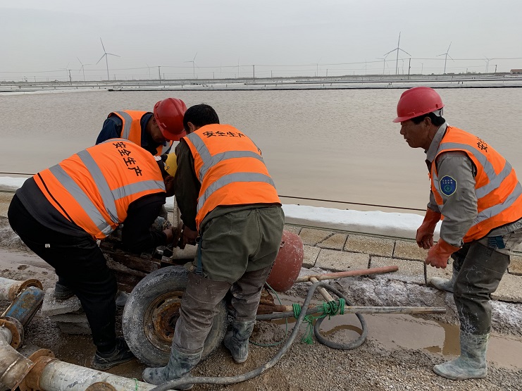 目前,埒南制盐分公司春季扒盐工作正在有序进行,但伴随着春扒尾声的接近,参扒人员的安全思想意识有所下降。为积极消除广大职工麻痹大意思想,该公司组织所有带班人员对5台扒盐机组现场进行安全排查,强化扒盐现场安全管理。